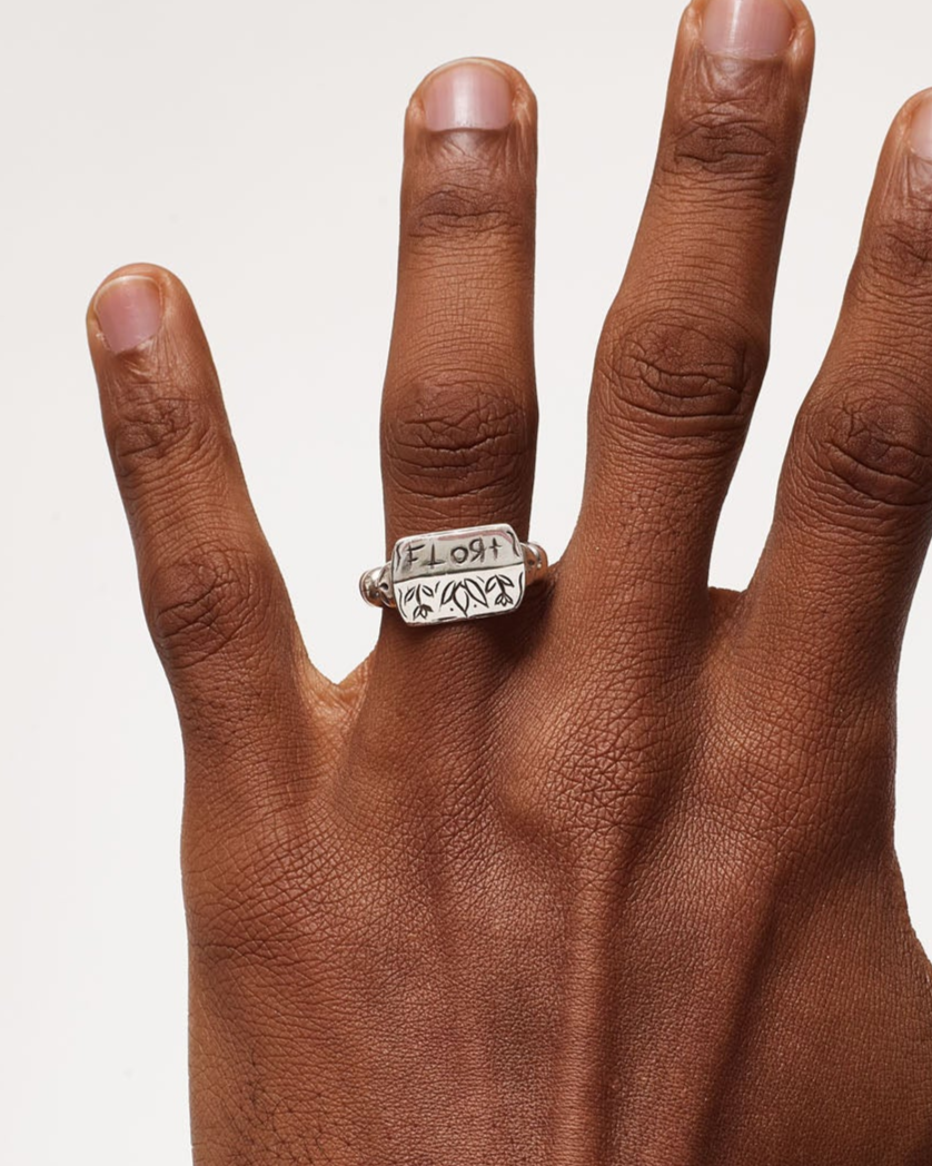 Handmade and Engraved Sterling Silver Signet Ring 925.