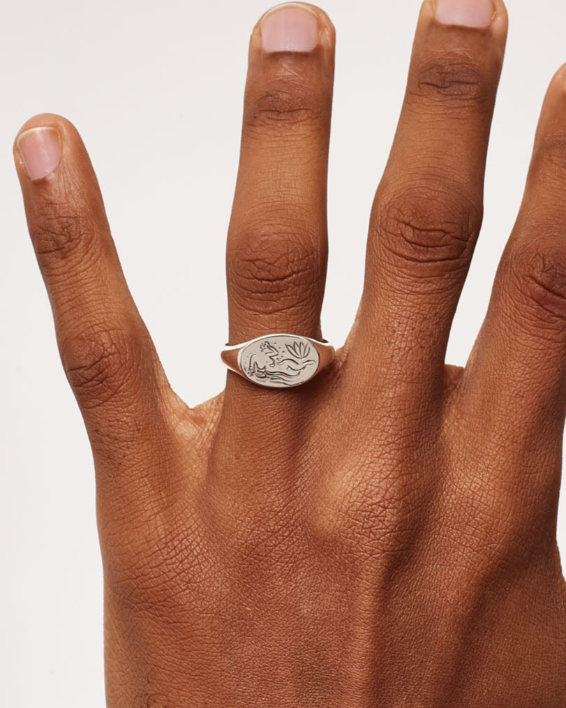 The Nude silver signet ring is one of our modern classic engraved rings featuring a unisex design and silhouette.