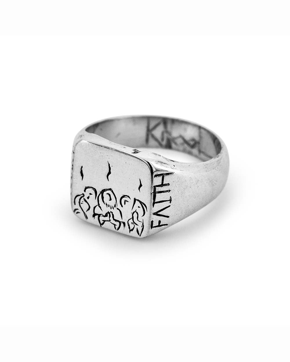 The Faith silver signet ring is one of our modern classic engraved rings featuring a chunky unisex design and rounded square silhouette.