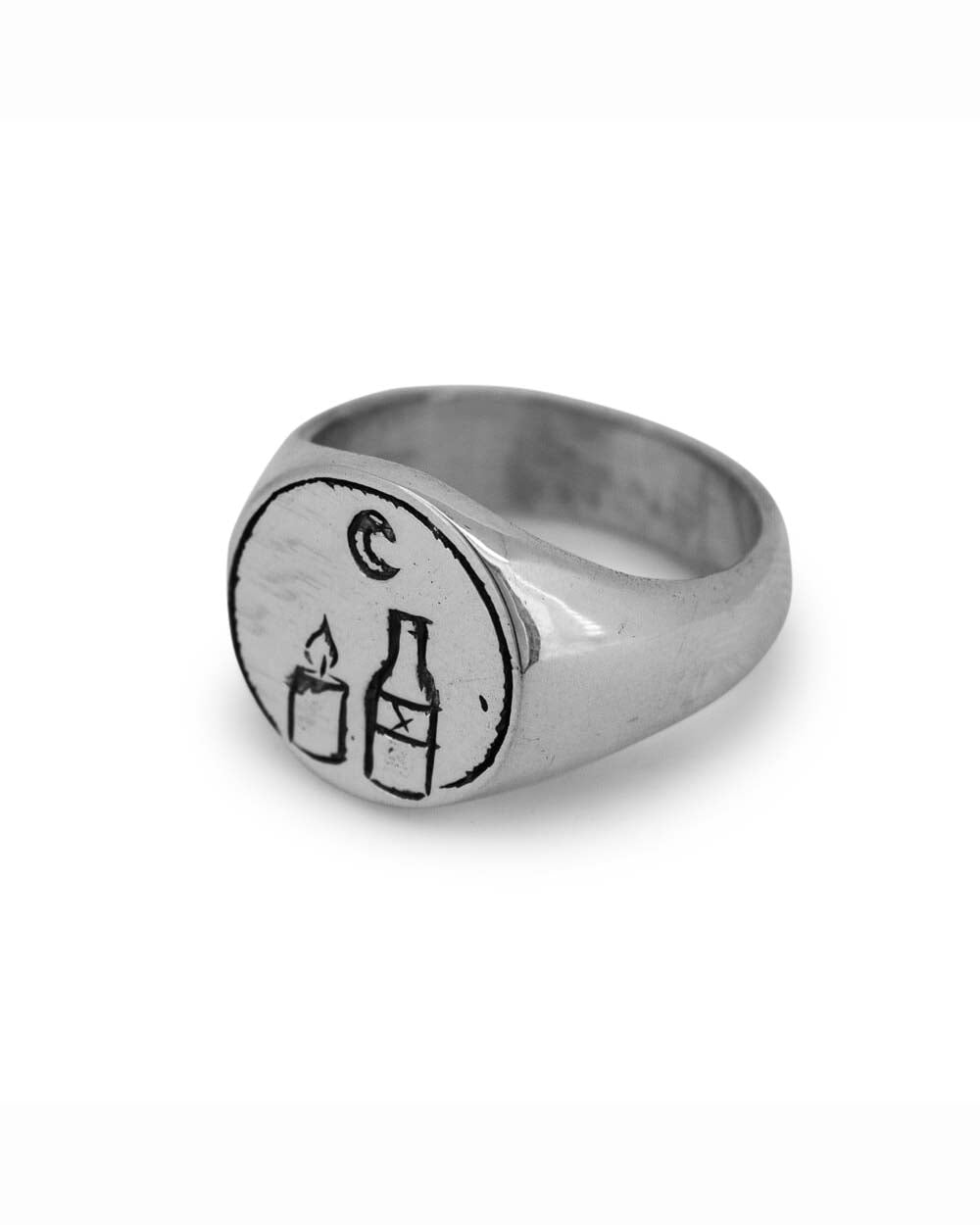 The Moonlight silver signet ring is one of our original and best selling engraved ring designs. Featuring a chunky silhouette this signet ring is perfect for your index or middle finger.