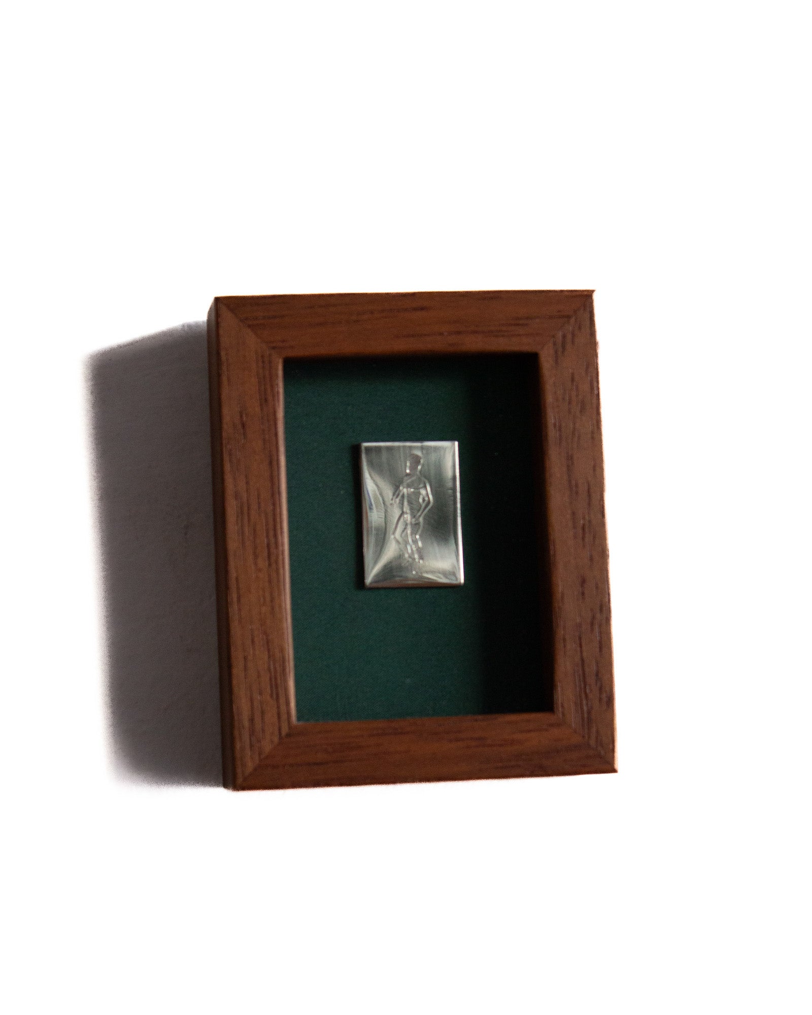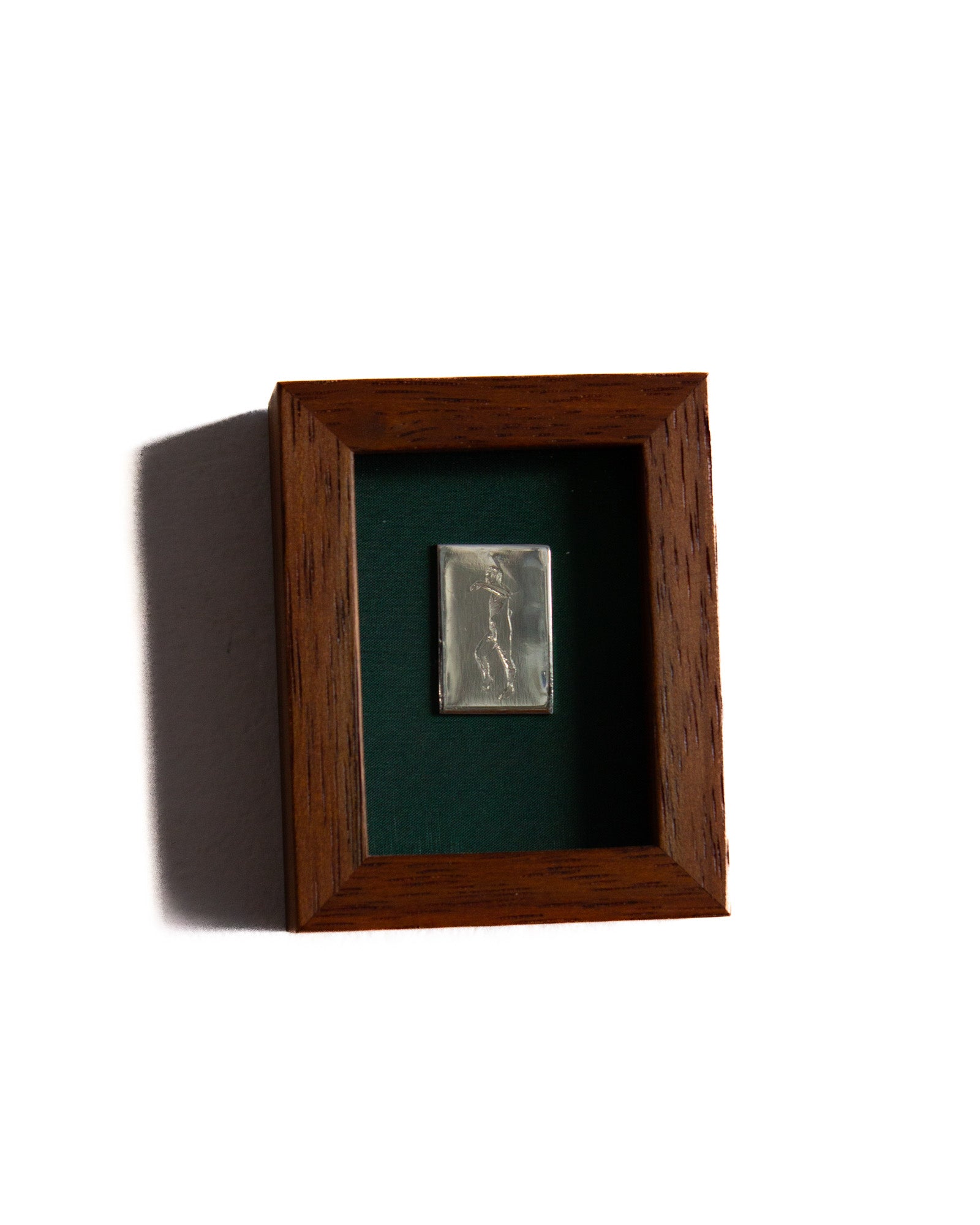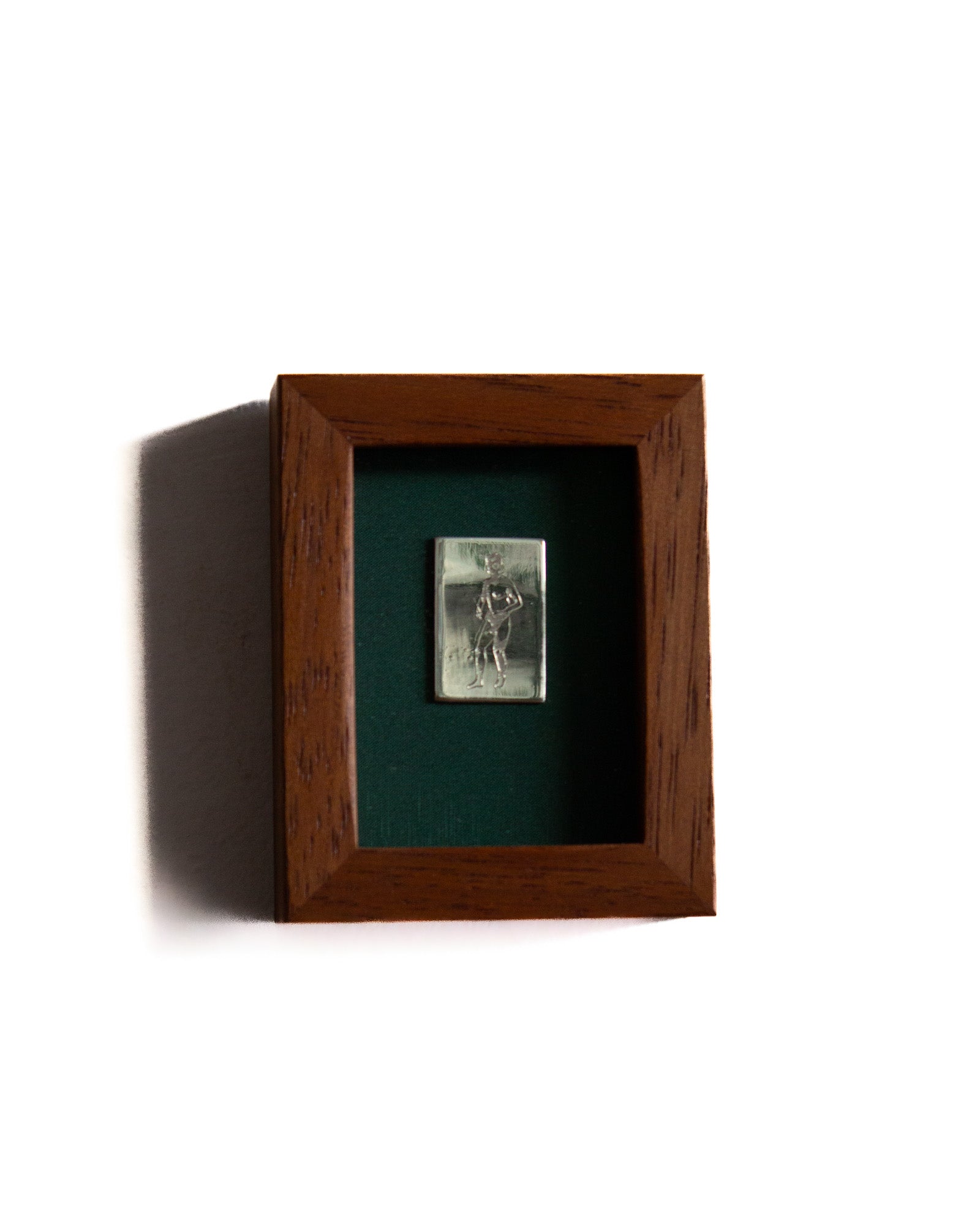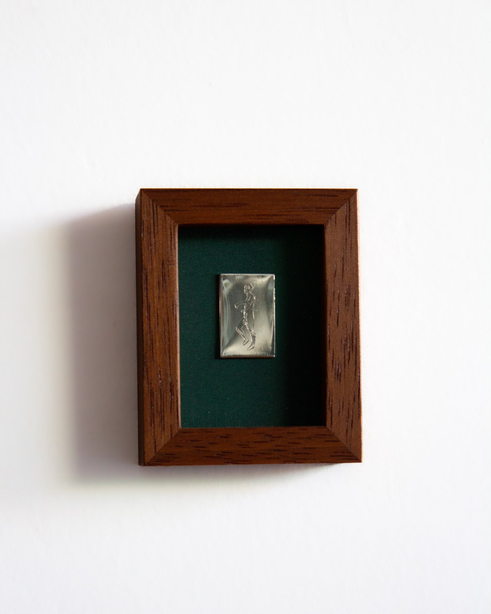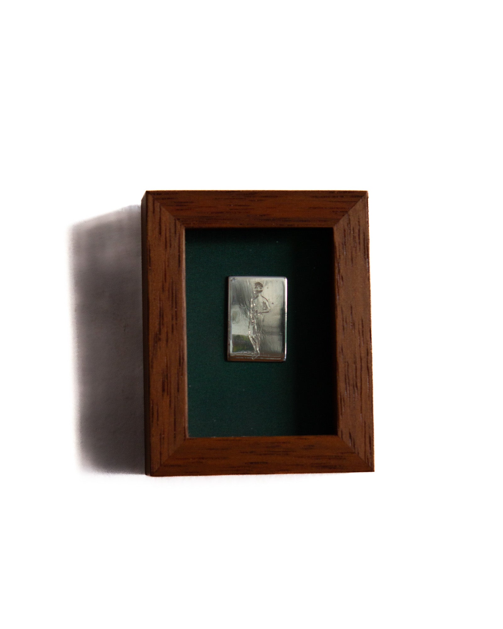 The piece has been glued to a piece of felt and encased in a 100mm x 80mm solid timber frame with glass face. Made by Lachlan Beecham