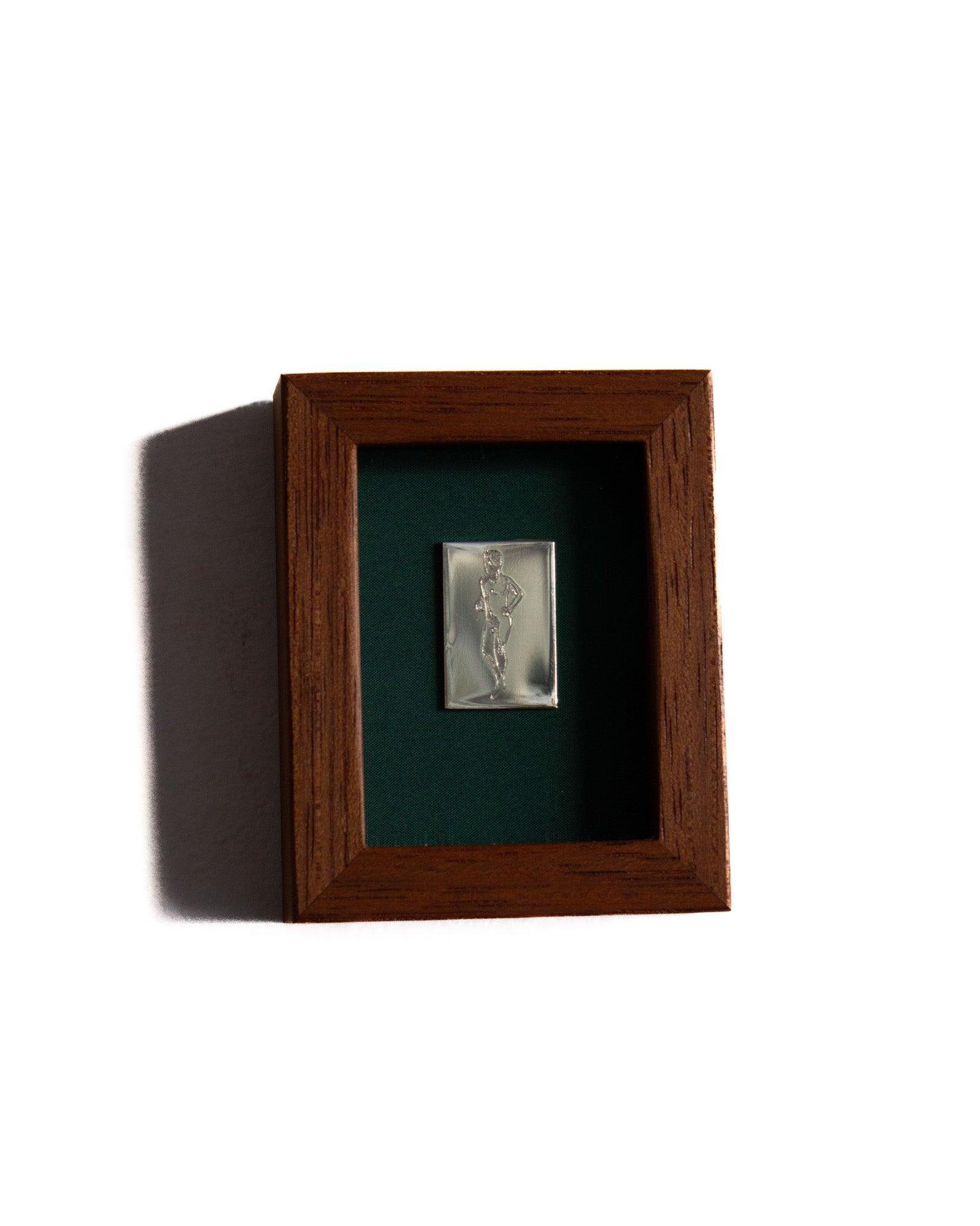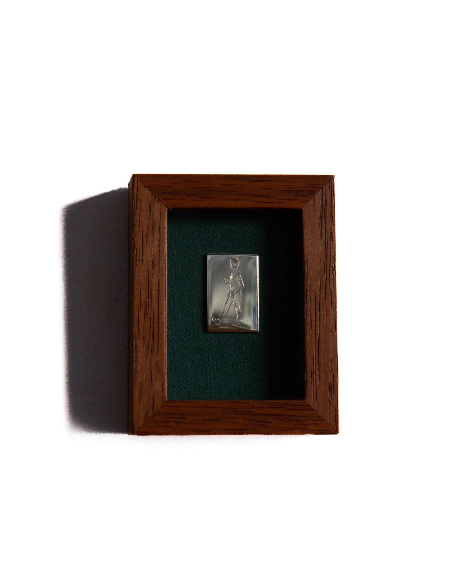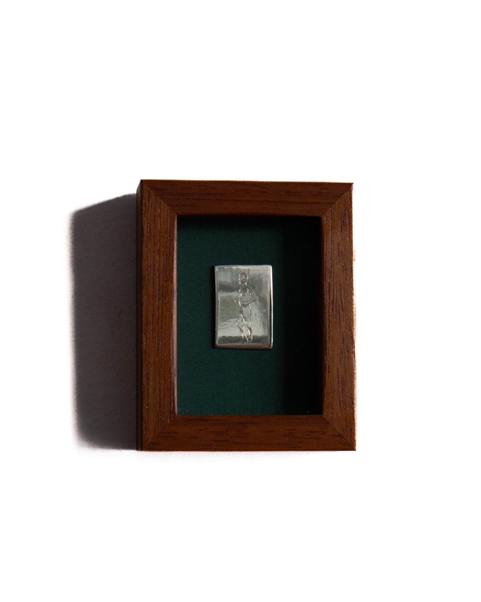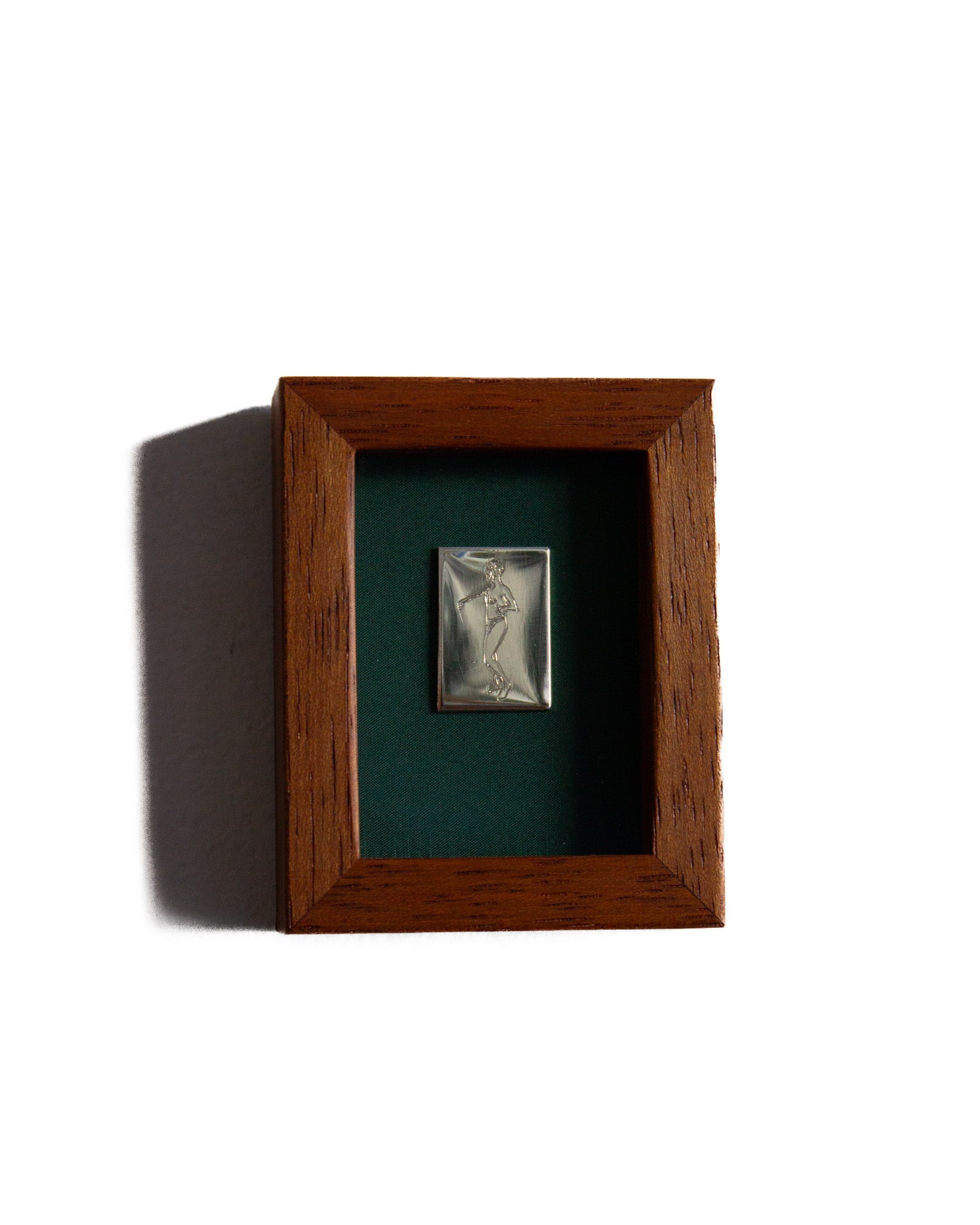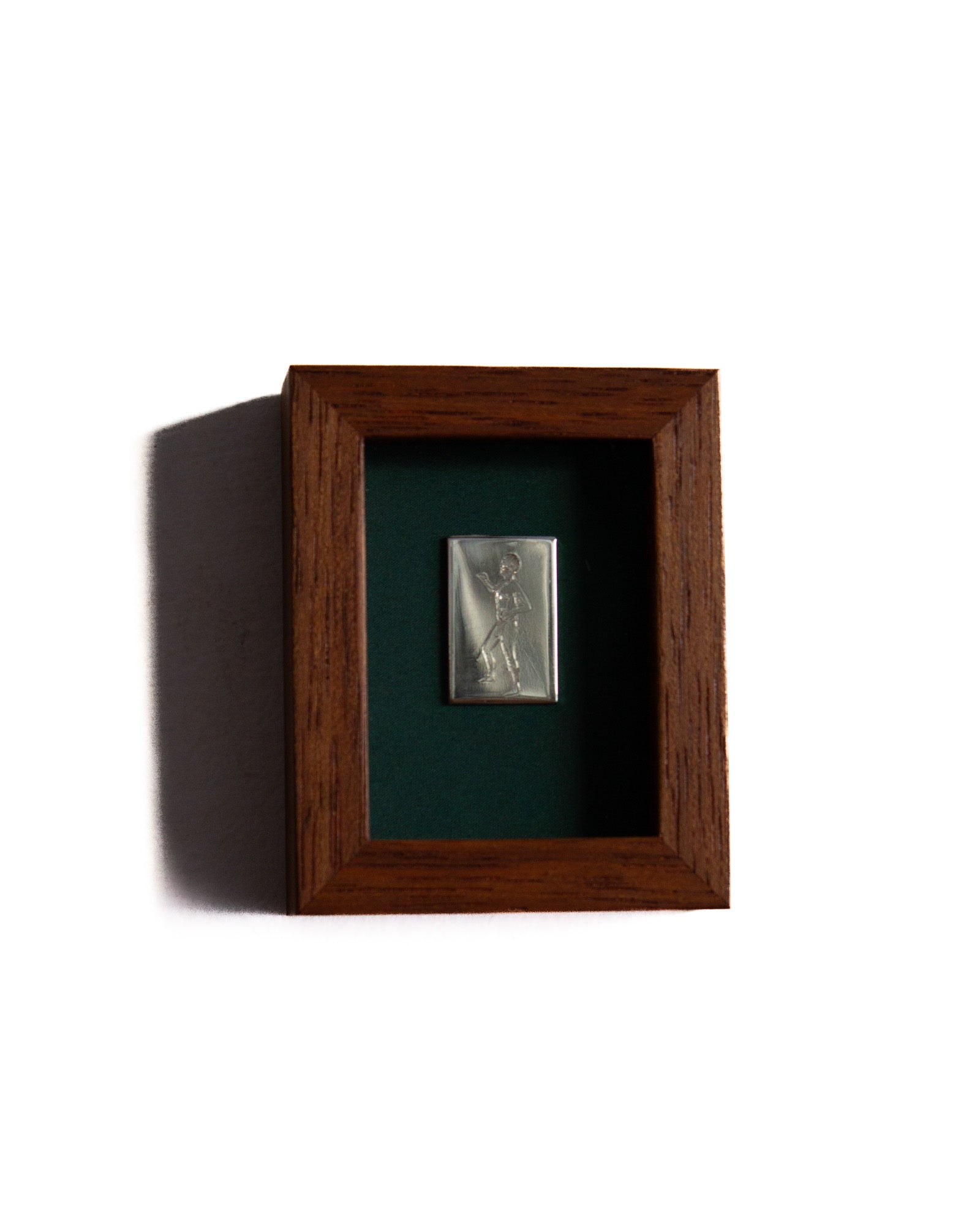 The piece has been glued to a piece of felt and encased in a 100mm x 80mm solid timber frame with glass face. Made by Lachlan Beecham